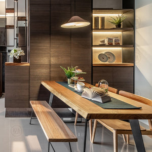 LINDSEY Radisson Scandinavian Nordic Dining Table Solid Wood Slab Live Edge / Straight Edge